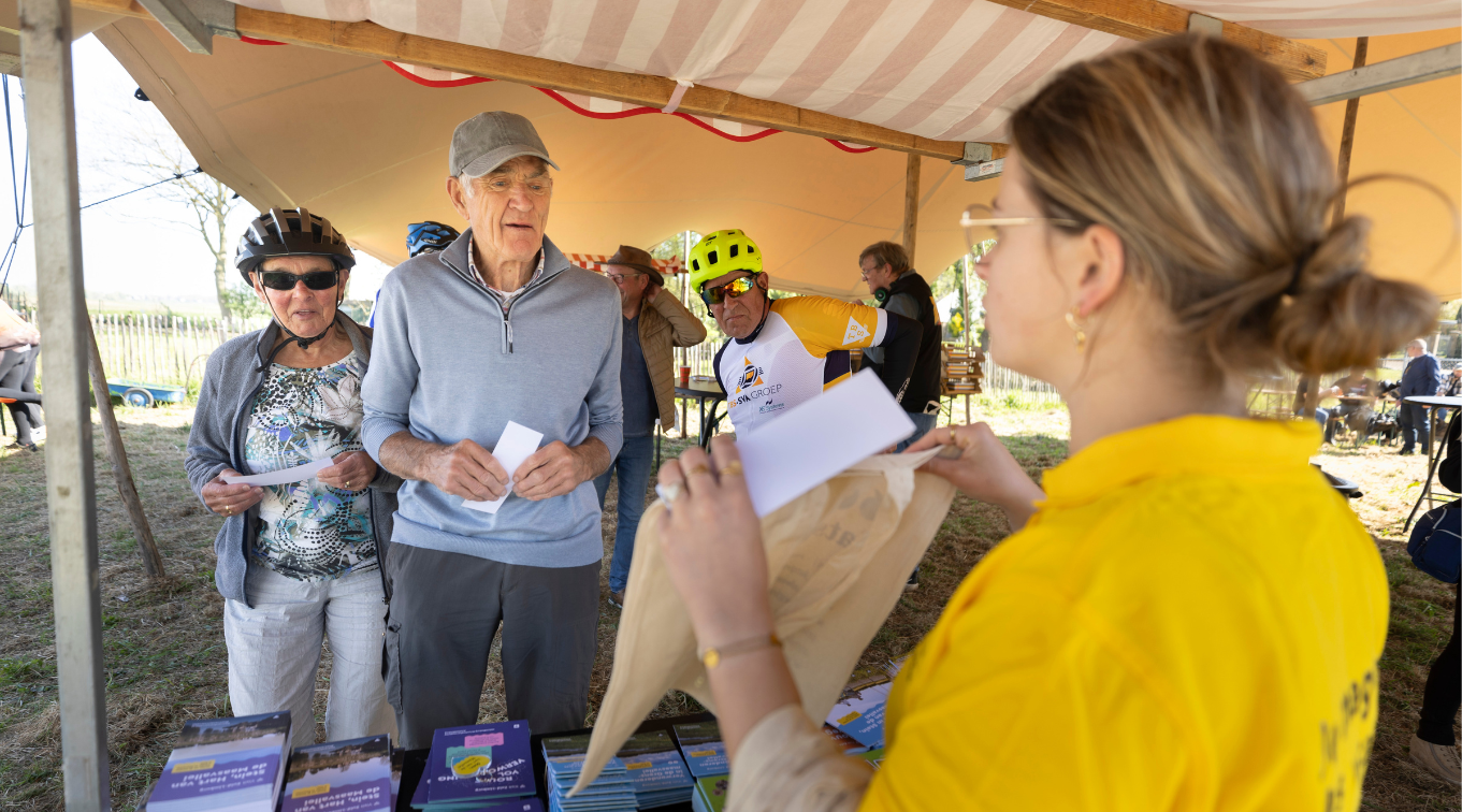 Hier staat de organisatie voor je klaar met een leuke goodiebag vol interessante informatie over fiets- en wandelroutes in de gemeente Stein. Geniet van een kopje koffie/fris en een broodje worst/hamburger, ga mee op een leuke tocht langs de Maas met een Maasverkenner en laat de kinderen zich uitleven met de nieuwe speurtochtkaart! Of je nu komt wandelen, fietsen of gewoon gezellig langskomt: er is voor iedereen wat te beleven!